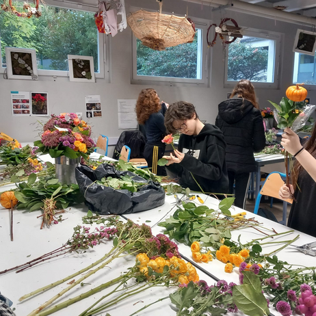 + Travaux pratiques dans une salle dédiée à l’art floral et commercialisation de leurs compositions